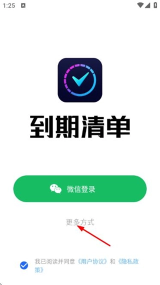 1、打开到货清单软件,点击“其他方式”选项,随即弹出更多登录方式的选择界面。