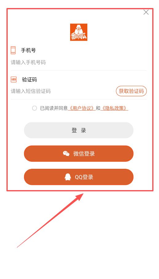 1、首先呢,打开软件后会出现登录界面,在这里输入你的手机号码,点击“获取验证码”按钮,再点击登录就能完成登录啦。