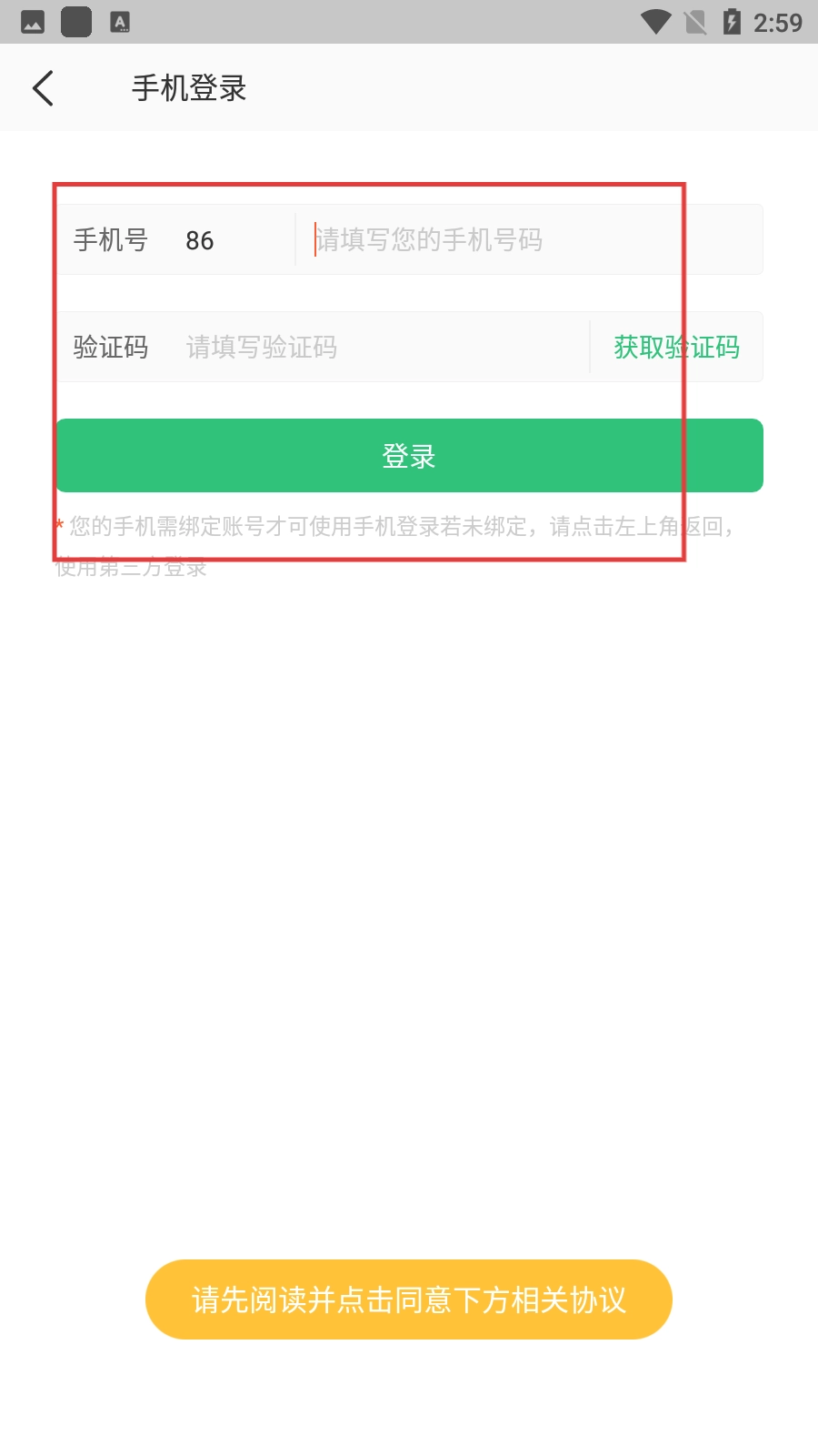 4、在手机登录页面,输入手机号,获取并填写验证码,点击【登录】即可完成登录。