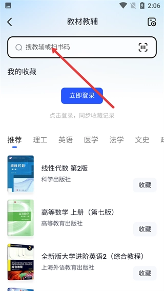 2、在【教材教辅-搜索框】中,可输入关键词或扫描书码,快速检索所需教辅资料。