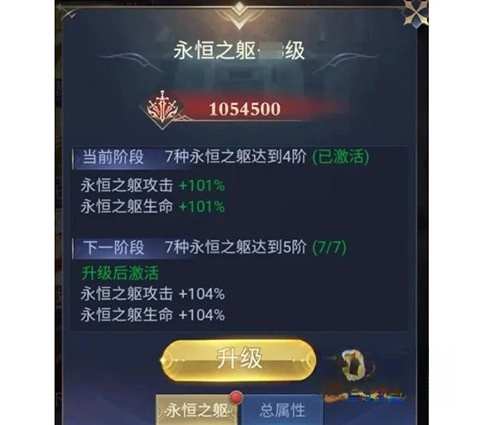 当你激活的身躯数量和等级达到一定条件时,就能对角色的永恒之躯进行升级。升级将直接带来强力属性的提升,让你的角色如虎添翼。