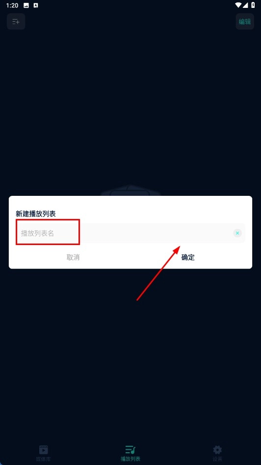 2、在【播放列表名-输入框】输入名称,点击【确定-按钮】完成创建。
