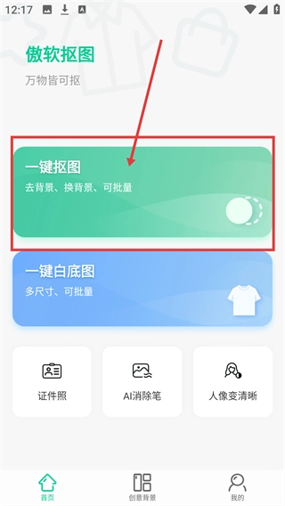 1、在【傲软抠图】首页,点击【一键抠图】选项,进入图片选择界面,挑选需要抠图的素材开启处理啦。