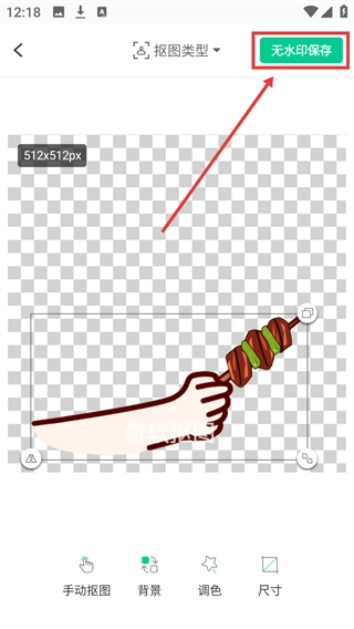 2、抠图完成后,进入编辑界面,可调整画面参数,点击右上角【无水印保存】按钮,触发保存选项弹窗哦。
