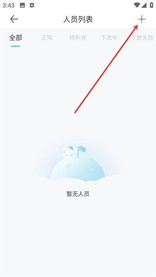 3、在【人员列表】页点击右上角“+”按钮,进入【添加人员】界面,准备填写人员授权信息。