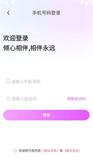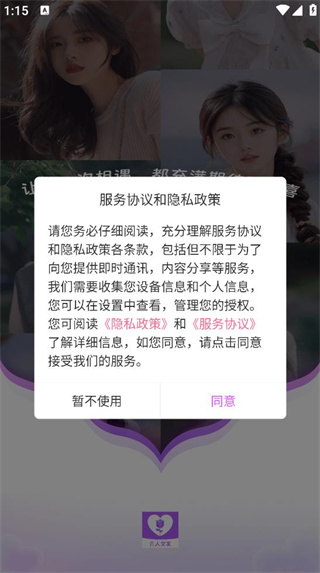 1、并安装附近速配闪聊,点击同意服务协议和隐私政策。