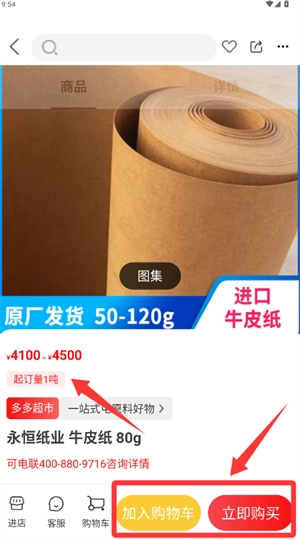 4、选定商品后进入详情页,可将其加入购物车或直接进行购买操作。