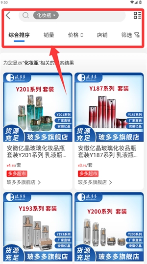 3、在板块页面输入商品关键词,支持按多种排序方式筛选。