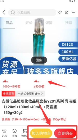 4、选定商品后进入详情页,点击加入购物车或立即购买。