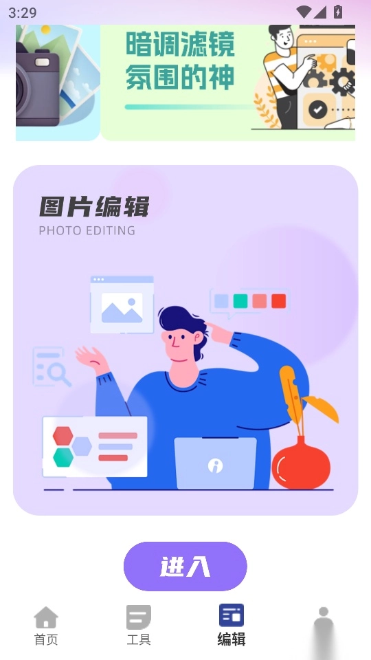 3.然后找到“图片编辑”模块下面的“进入”按钮到下一步