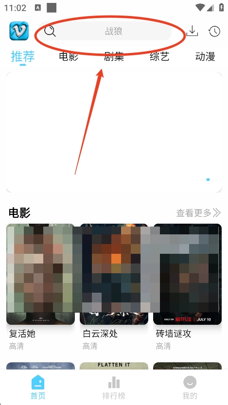 打开软件后,点击首页顶部的搜索框