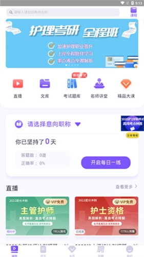 2, 学习: 包含护士学习中心,提供护考汇集、每日一练、8万道题库等功能。