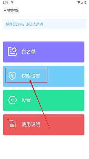 4、返回主页,点击\\"权限设置\\"进入即可。