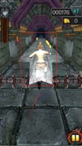 1、在古老的庙宇里,为了躲避恶魔守卫的追捕而快速奔跑,借助跳跃、滑行等动作来躲开陷阱和障碍物,保证能一直向前行进而不被抓住。