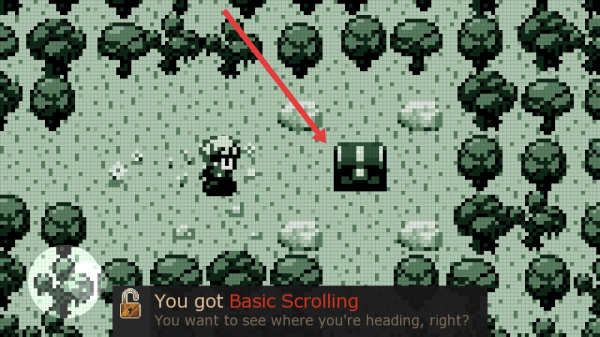 1、按照指示通过点击主界面的New-Game选项,开启Evoland的冒险,进入初始2D地图场景。