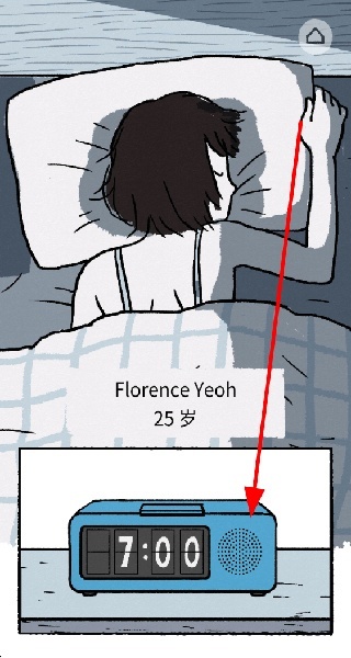 1、点击闹钟起床,开启弗洛伦斯的一天,推进剧情,体验她的生活日常,开启恋爱故事的开端。