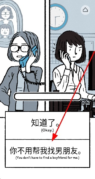 4、面对父母电话选择对话,决定剧情走向,体验弗洛伦斯的情感态度,推动恋爱故事的发展。