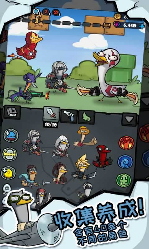 贱萌又可爱的小鸭正等你亲手养成,相同等级的小鸭可以轻松合并升级,还有各种搞笑剧情让你忍不住捧腹大笑。