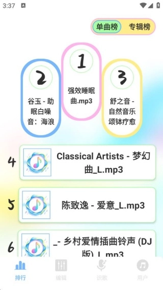 3、展示单曲榜、专辑榜等音乐榜单,让用户了解当下热门音乐作品,洞悉音乐潮流。