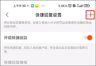 2、选择“快速回复设置”功能。