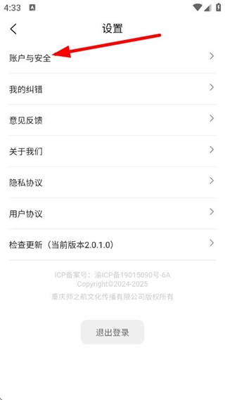 2、在设置页面,点击账户与安全,进入账户与安全页面。