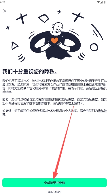 2、重启后免登录进入,点击接受全部隐私说明注意事项部分。
