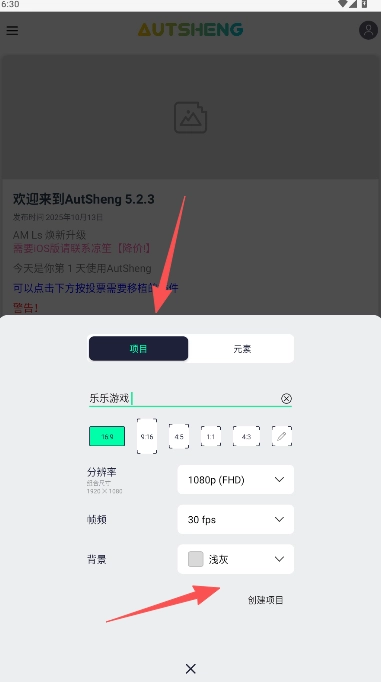 4、点击+选项创建项目。
