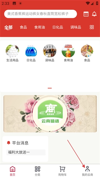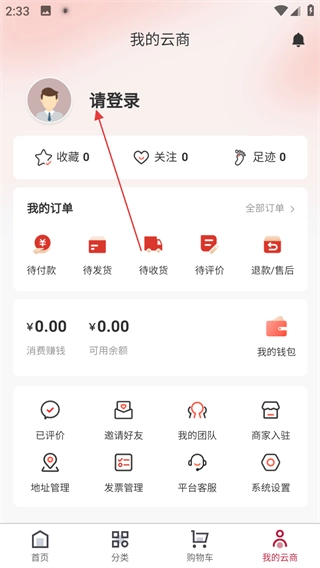 1、打开软件首页后,点击底部的“我的云商”选项,即可进入个人页面。