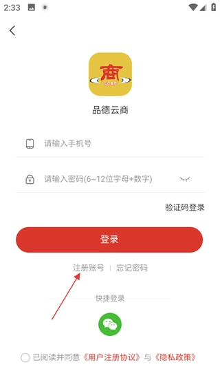 3、在登录页面,点击注册账号,进入注册页面。
