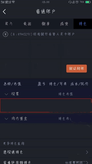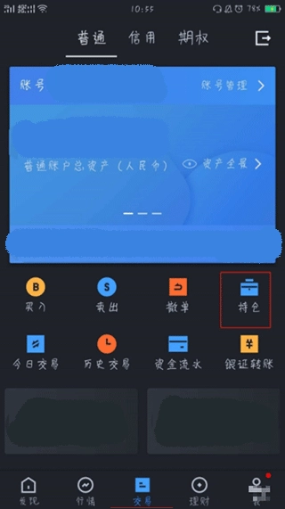 2、登录完成之后就会有自己的具体信息展现哦,还是在交易页面点击持仓按钮;