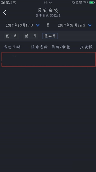 5、在历史成交页面就能看到了最近的交易记录了;