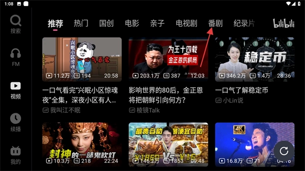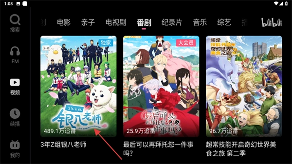 2、在番剧推荐页面,找到3年Z组银八老师,点击进入其播放页面。