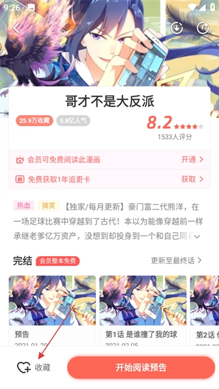 4、在哥才不是大反派详情页面,可点击收藏将其加入收藏。