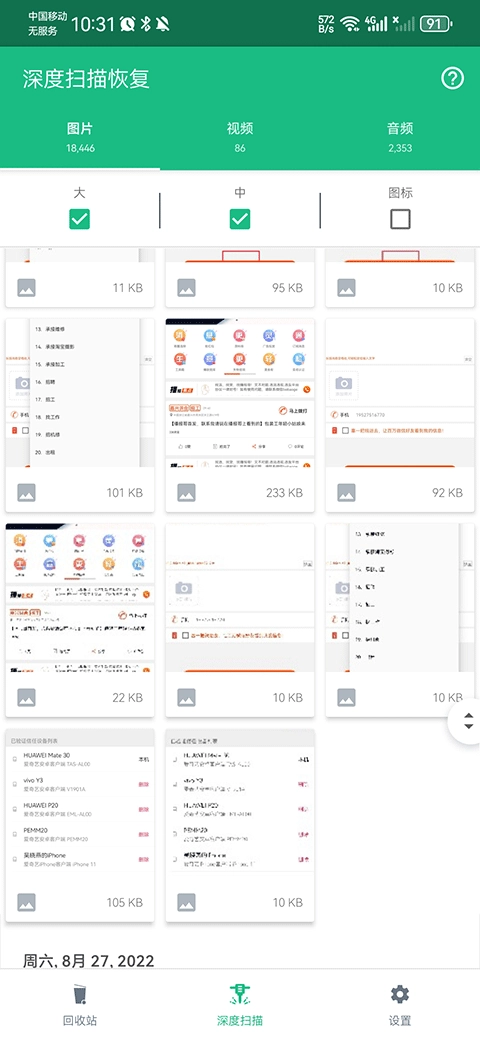 Dumpster恢复软件是一款功能强大的手机回收站应用。它为用户提供了简单高效的方法,用于管理和恢复那些意外删除的文件、照片、视频等各类数据。不管是由于误操作、手机出现故障,还是其他什么原因,一旦你发现重要文件被删除了,这款软件就能帮你轻松地把它们恢复回来。而且恢复过程简单又迅速,用户只需要进入回收站内,找到被删除的文件或者图片,点击一下就能完成还原恢复操作。除此之外,它还具备可靠的设备备份功能,可以将删除的图片、文件和视频备份到云端,完全不会占用设备的任何存储空间,使用起来非常实用。