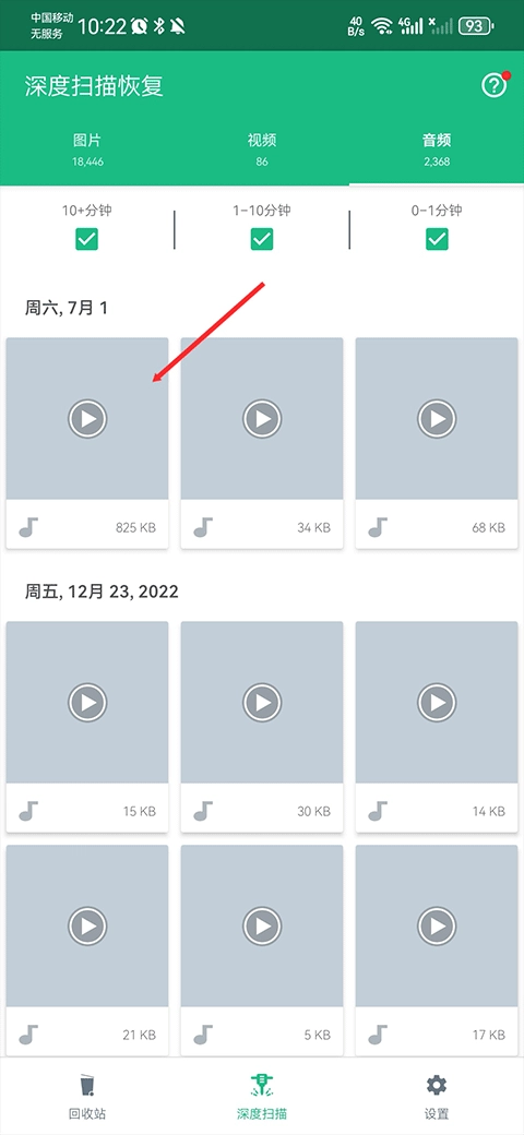 1、进入深度扫描界面后,系统将自动对之前删除的图片、视频与音频文件进行扫描