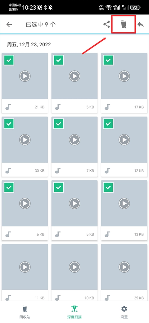 2、然后批量勾选需要删除的文件,然后点击右上角垃圾桶按钮