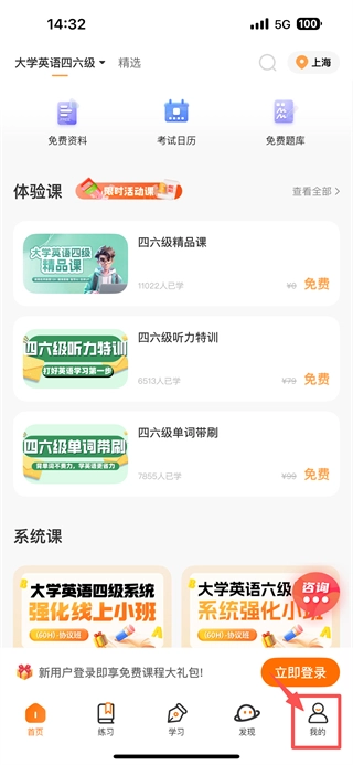 1、打开英语学习类应用,点击底部的“我的”选项,进入个人中心页面。