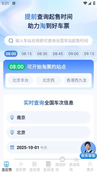 2、查起售板块,是可以输入车站名称进行查询,起售时间便捷获取。