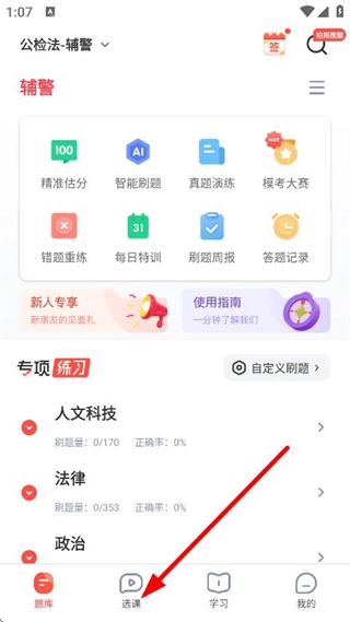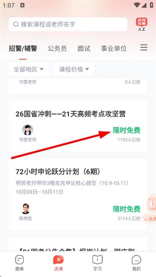 2、在选课页面,选择招警辅警分类下的课程,进入课程详情页。