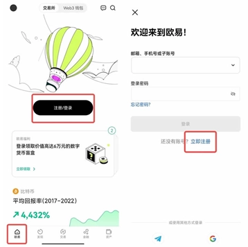 注册/登录:打开交易所后,用户可以选择使用手机号或邮箱进行注册/登录。在注册过程中,需要填写相关信息并进行验证。
