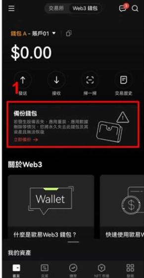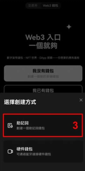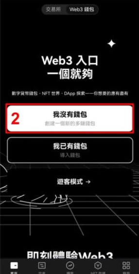 打开 币交易所 App 切换到 Web3 钱包首页进行「注册」,也就是建立一个属于自己的多链钱包,还没使用过去中心化钱包的话请选择以助记词方式建立,如果已经有冷钱包或是在其他地方例如 MetaMask 创过的话可以在第二步选择导入钱包。