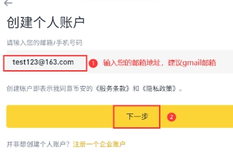 阅读并同意《服务条款》与《隐私政策》,然后点击【创建个人账户】。