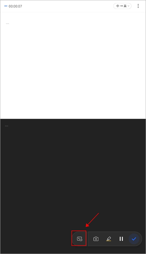 3、点击下方的“悬浮字幕”按钮,转写翻译的文字会自动缩小为“悬浮字幕”框。