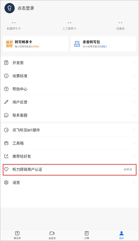 2、申请流程:登录讯飞听见App,我的-听力障碍用户认证-上传身份证件-上传残疾证-提交审核-3个工作日内以短信通知审核结果。