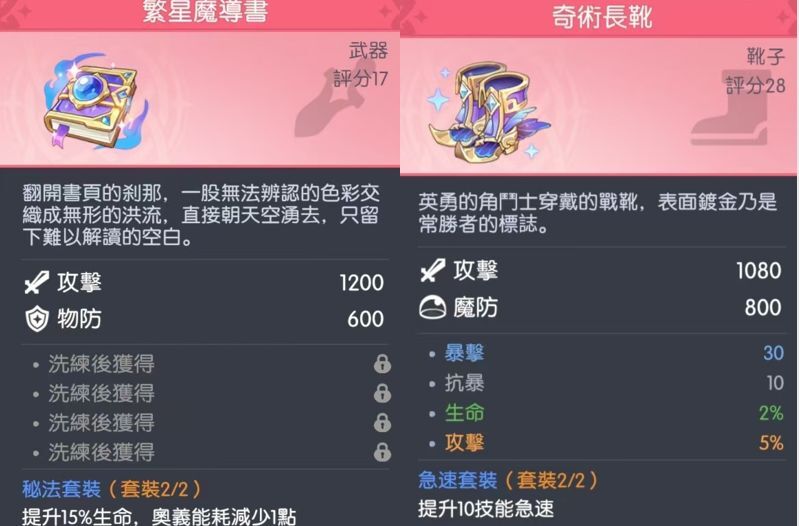 装备推荐:奥义减费,爆伤套,攻击套,暴击套。