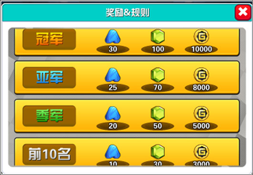 3、周赛:建议无论如何成绩如何,一定要参加。周赛奖励十分丰富,最低也有宝石赠送的参与奖。