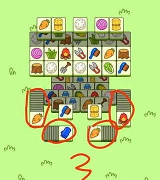 4、我们只需要找到图中三个图案相同的方块,就能完成消除。