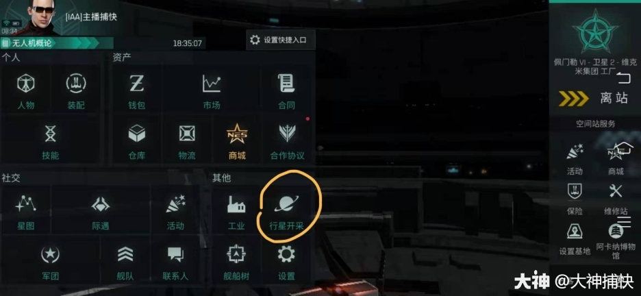 点开人物头像后,可以在右下角工业旁边看到【行星开采】功能,点开后就可以进入行星开采的界面。