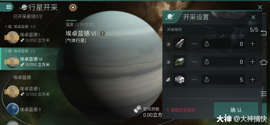 在基础的1个星球、2个阵列、100立方米的基础上,可以最多开采6个行星、每个行星14个阵列、1000立方米的货仓。