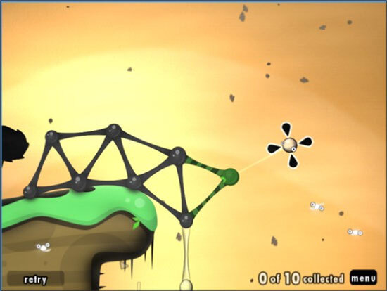 《粘粘世界》,也被称作《黏黏世界》,英文名为“World of Goo” ,是由独立游戏开发团队2D BOY精心打造的一款休闲益智物理小游戏。这款游戏采用清新可爱的简约卡通画风来设计,以2D横版画面呈现。整体画面仅由简单的线条与节点构成,然而它并不似市面上常见的连线游戏那般生硬刻板,相反,其风格简约清爽且细腻精美,动静结合得恰到好处。特别是那又Q又弹的粘粘小球形象,搭配上轻快悠扬的背景音乐以及可爱激萌的音效设计,能让玩家在轻松游玩的过程中,自然而然地放松心情,简直令人沉浸其中,欲罢不能。